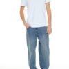 Details Crafted from non-stretch denim, this pair of jeans features a mid-rise waist, belt loops, zip fly and button-front closure, straight leg, and five-pocket construction.Content + Care – 49% cotton, 28% rayon, 23% polyester – Machine wash cold Size + Fit – Model is 6’1′ and wearing a Size 32